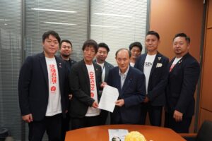 本活動には、亀岡勇紀専務理事、塚島英太青年部長、和倉温泉おくだやの奥田一博代表取締役らが参加し、「温泉文化」ユネスコ無形文化遺産登録推進議員連盟に所属する国会議員の先生方約50名に要望書を提出しました。なお、同議連会長 菅義偉先生、会長代行 赤羽一嘉先生、幹事長 柴山昌彦先生、外務大臣 岩屋毅先生をはじめとする15名の先生方には、直接手交いたしました。